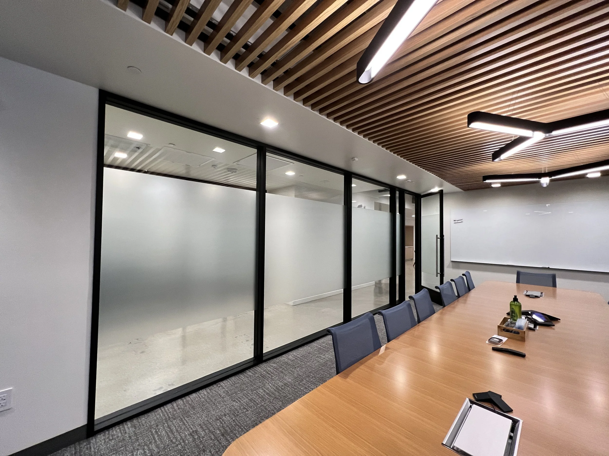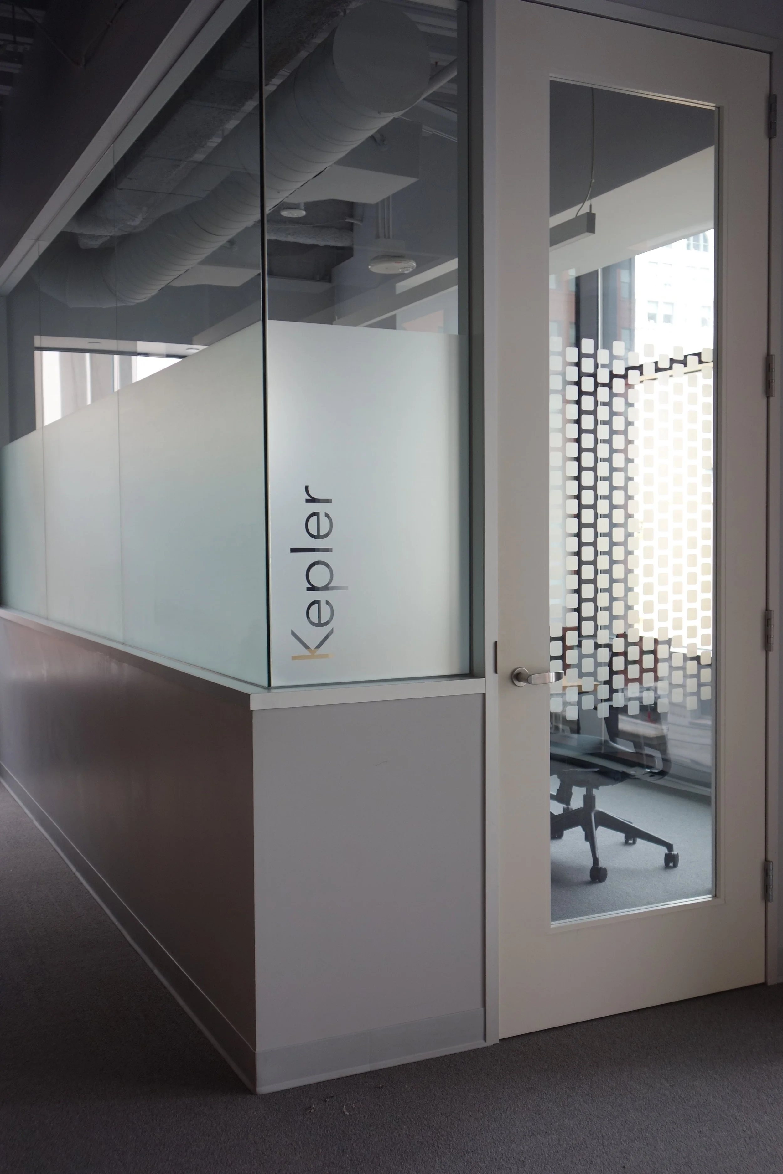 Natural light is important to the productivity of your employees and your business, but privacy is also an important issue. Decorative film allows you to keep the natural light in an office space, while providing as much privacy as you need. We have multiple options to fit your design and privacy needs including custom cut vinyl or polyester from opaque to transparent.